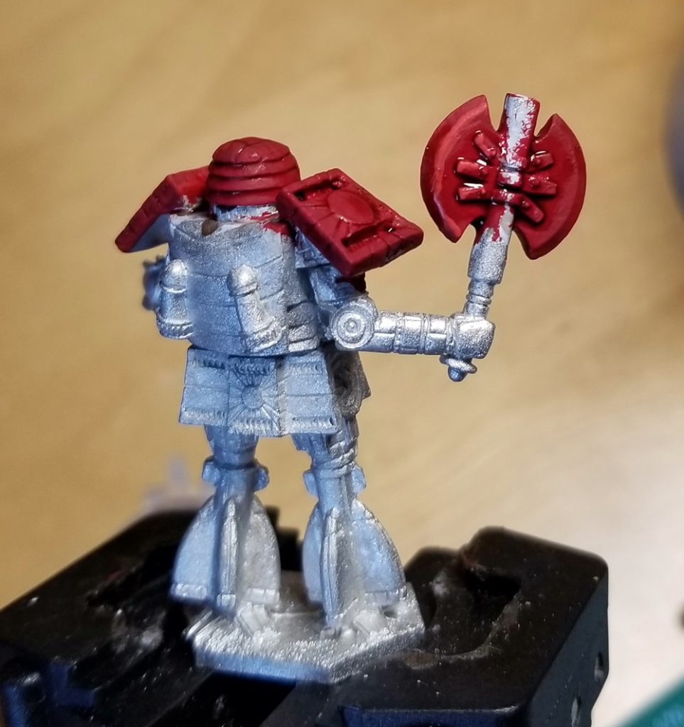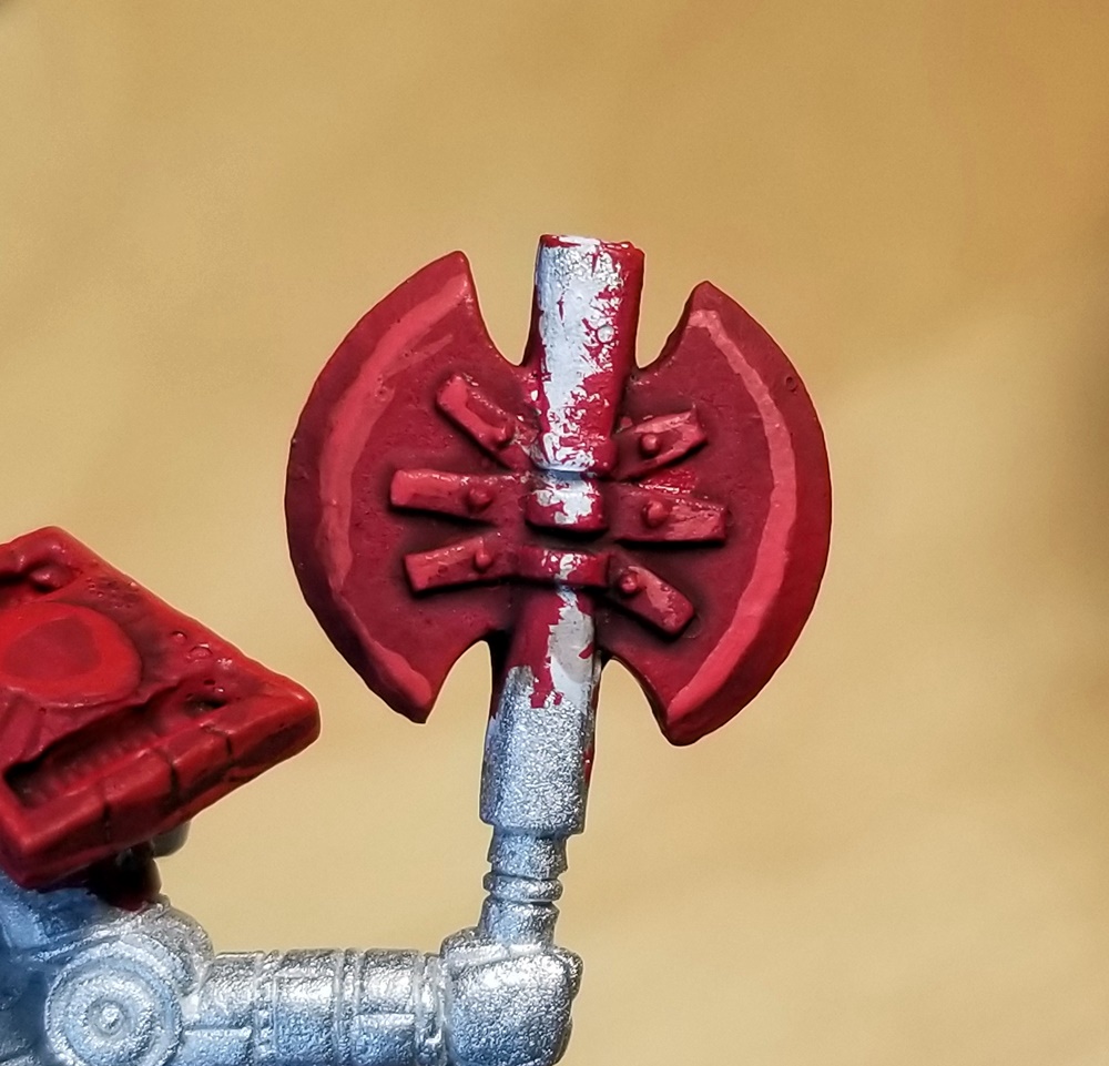 • The sloppy single coat on the ax blades left a bubble or two here and there, but smothered no details.