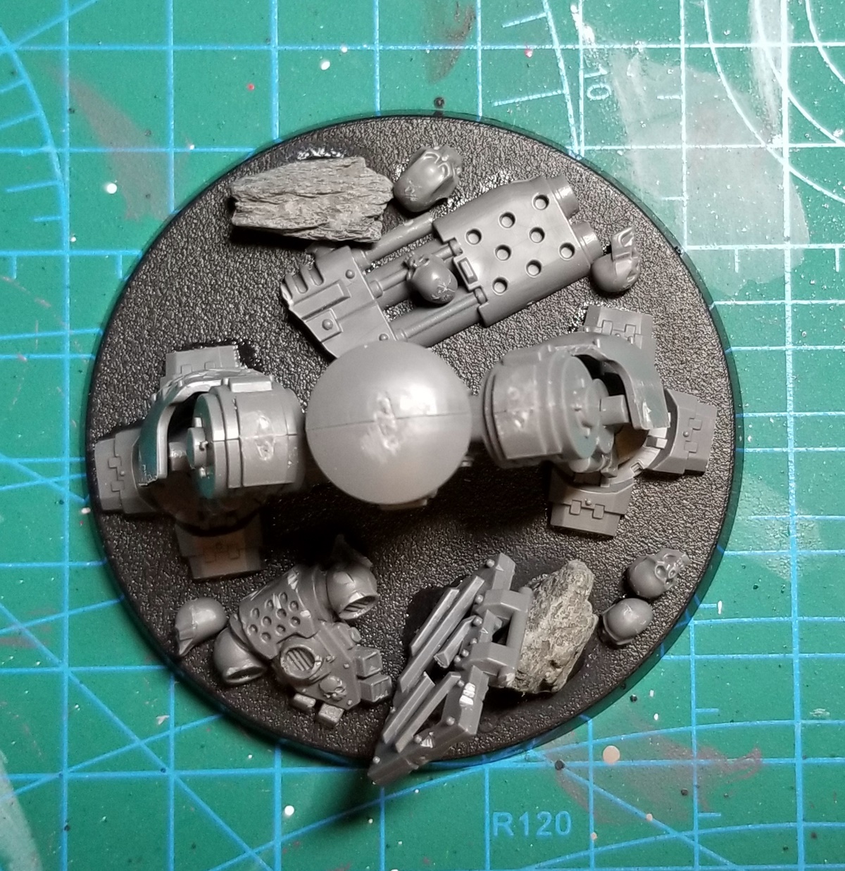 I love working on miniature bases, creating little landscapes to complement and set off the actual figure, so for my second Dreadnought I picked up some plain 60mm GW bases on Ebay to give me a blank canvas to work with. I gather that a lot of folks don’t love basing, so I figured I’d talk a bit about my process — not because I’m an expert (I’m not!), but because maybe some of that joy will be passed along.